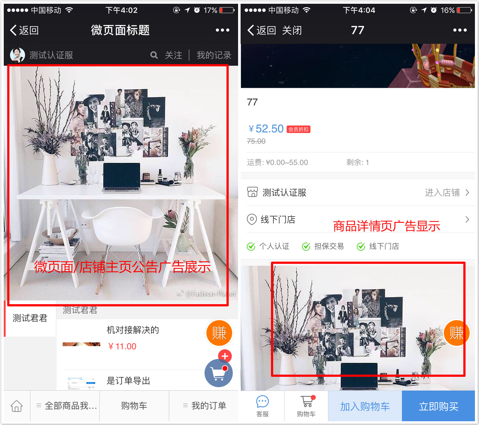 2. 设置广告出现的位置和出现的页面,通过添加内容,编辑广告内容,操作同微页面设置。可以通过“添加内容”里的组件,添加推荐商品,公告、促销活动等信息到公共广告中。详情如图: