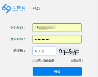 访问www.huisou.cn 点击页面右上角登陆