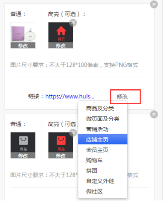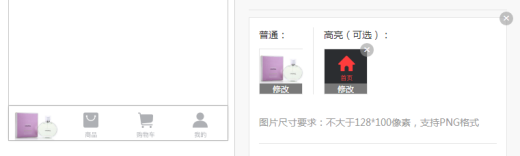 点击图标上的“修改”,可以将自己设计好的导航图片进行上传使用,使导航更加美观。此导航还可选择高亮格式。