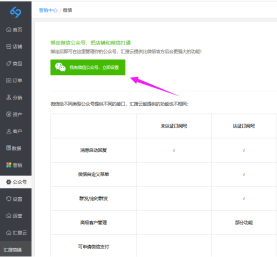 5、开通权限后,需要退出重新登陆会搜云系统,然后进行公众号授权