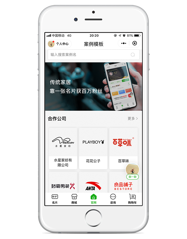 编辑完成后,将其设置成主页,我们就能在手机端上,打开名片官网查看到案例展示界面啦。