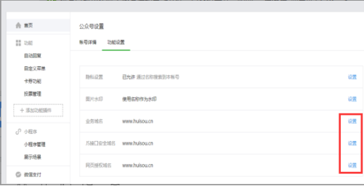 1、登陆微信公众平台(https://mp.weixin.qq.com/)——点击公众号设置——功能设置,填写: