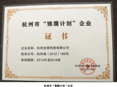 会搜荣获中华人民共和国信息产业部颁发的“软件企业认定证书”;同年,成功入选杭州市科技型初创企业“雏鹰计划”培育工程,深受省市领导重视与好评!