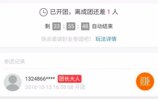 开起模拟成团后,24小时内人数未满的团,系统将会模拟“匿名买家”凑满人数,使该团成团;